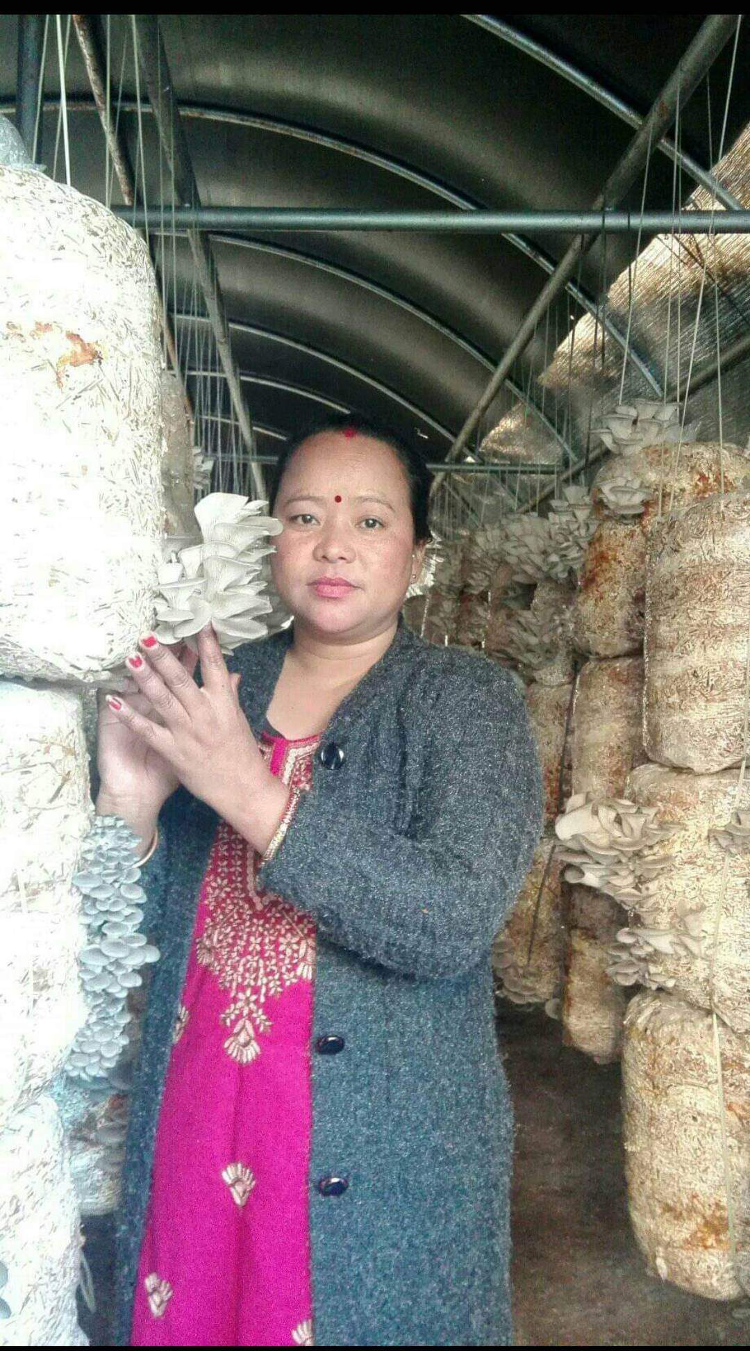च्याउखेतीका लागि कृषि बिकास निर्देशनालय सुर्खेत को साझेदारी कार्यक्रम बाट एक वटा टनेल निर्माण गरि च्याउ उत्पादन गर्ने गरेको बताइन । च्याउबाट राम्रो आम्दानी लिन सकिने भए पनि जिल्लामा गुणस्तरीय बिउ नपाउँदा व्यवसायी समस्यामा परेको उनले बताइन ।